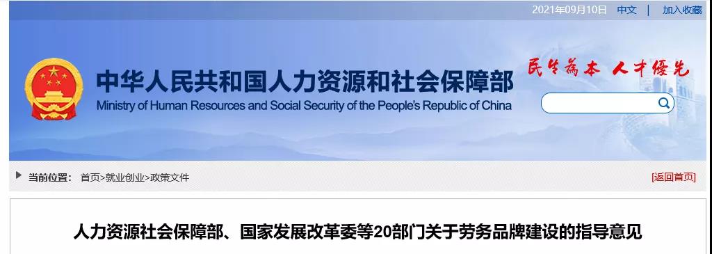 近日,人社部、发改委、住建部等20部门联合发布《关于劳务品牌建设的指导意见》,从而全面推进乡村人才振兴决策部署,切实加强劳务品牌建设。