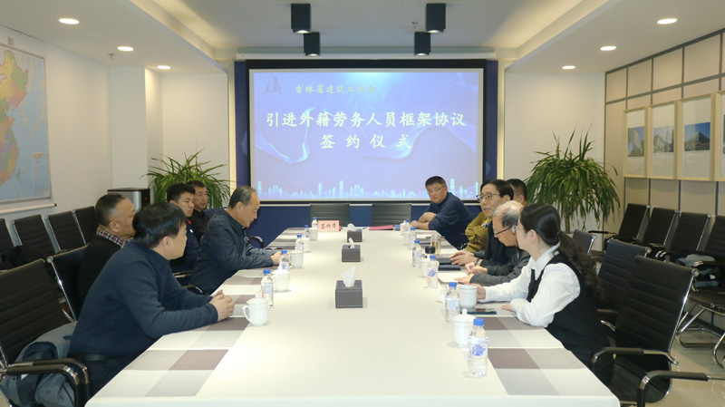 12月15日,延边豆满江劳务派遣有限公司与吉林省建筑业协会,就“共同开发引进外籍劳务研修人员”事宜,在长春签署框架合作协议。延吉高新区管委会副主任康峰镐、管委会科长金成哲,延边豆满江劳务派遣有限公司董事长刘纯志、总经理苏玉海,吉林省建筑业协会会长陈伟、副会长樊祥杰,党支部副书记王文祥、常务副秘书长孔永臣、副秘书长龚春杰,吉林省华兴工程建设集团副总经理、吉林省兴延产业园管理有限公司董事长张武,吉林省建协建筑劳务专委会会长、吉林省兴延产业园管理有限公司总经理王君启等参加签约仪式。