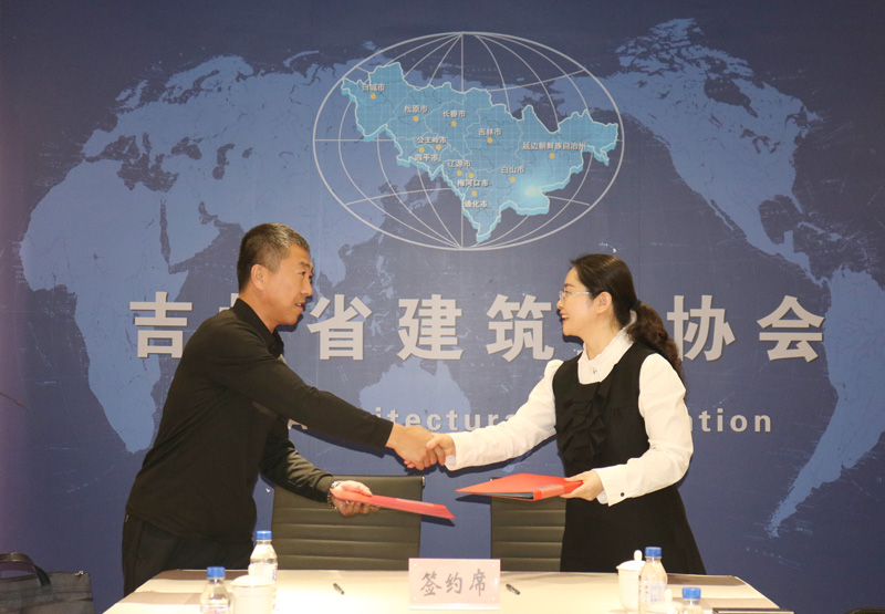 最后,龚春杰副秘书长代表省建筑业协会,苏玉海总经理代表延边豆满劳务派遣有限公司,签订了框架合作协议,并合影留念。